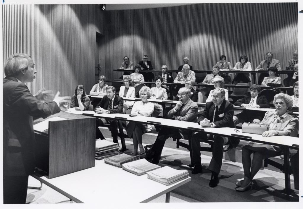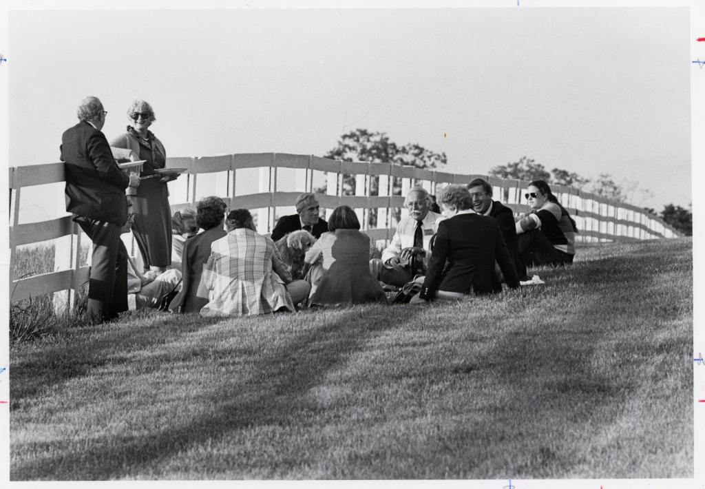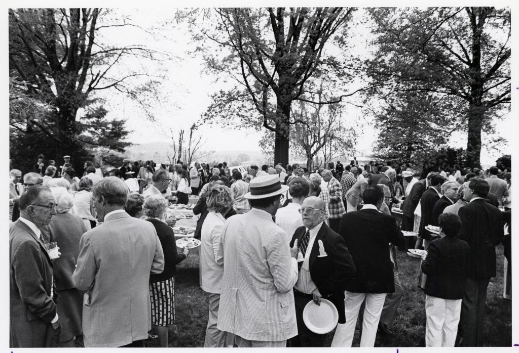 Alumni socialize at the Law Alumni Weekend in 1984.