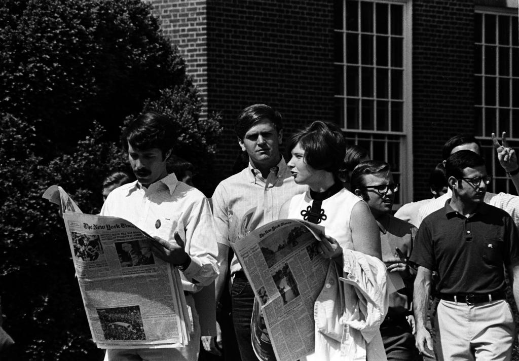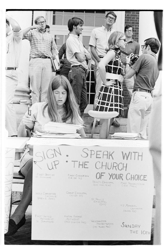 These striking images show the comingling of students and faculty: bare feet, bandanas, and blue jeans mix with ties and oxfords.